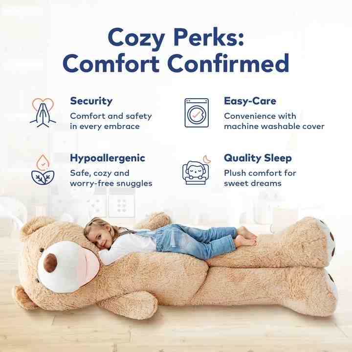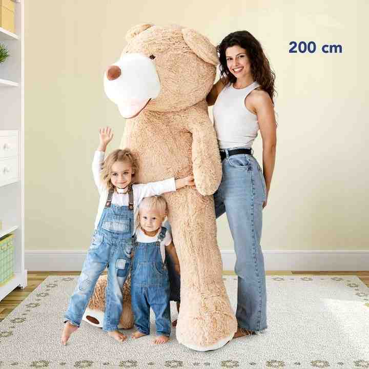 Sem plišast medved, velik sem 200 cm in čakam, da mi daš lepo ime. Sem dovolj velik da te varujem ponoči, podnevi in postanem tvoj prijatelj. Zato pohiti in naroči staršem, naj ti še danes naročijo medveda, ki bo ti polepšal dan in ti varoval sobo, ko te ne bo doma. Medvedek je lahko tudi dekoracija prostora in v vsakdanje življenje vnese nekaj toplega in prijetnega. Plišasti medvedek 100 cm z mehkim, visokokakovostnim hipoalergenim materialom, s certifikatom CE. Lahko je odlično darilo za ljubljeno osebo ali prijatelje.