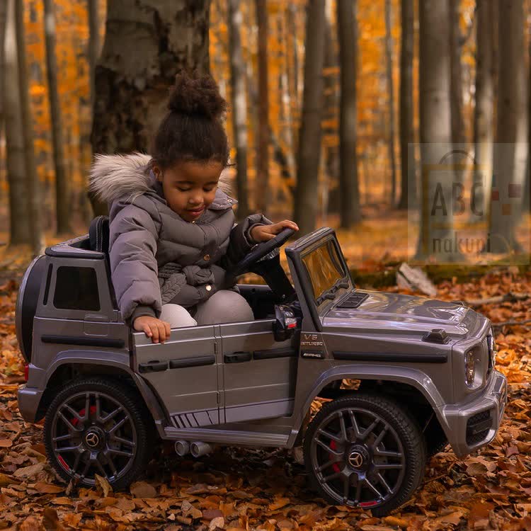Popolnoma pristen otroški avto na akumulator Mercedes G 63 v srebrni barvi, ki ga je treba imeti letos v svoji garaži. Mercedes AMG G 63 je vozilo na baterijski pogon po vzoru neuničljivega mercedesa razreda G. Bodoče male voznike bo očaral značilen videz, sijajni lak, udoben sedež, volan z gumbi in zložljiva ogledala. Kot se za avtomobil tega razreda spodobi, zagotavlja visoko udobje pri vožnji zahvaljujoč blažilnikom in platiščem EVA. Mercedes je opremljen s prednjimi LED lučmi in multimedijsko ploščo, na katero lahko priključite USB ključek z vašimi najljubšimi pesmimi v formatu MP3. Starši bodo navdušeni nad počasnim zagonom in dvema hitrostnima načinoma (otrok se bo hitreje naučil obvladovati vozilo), daljinskim upravljalnikom in izvlečnim ročajem za enostavno prenašanje.