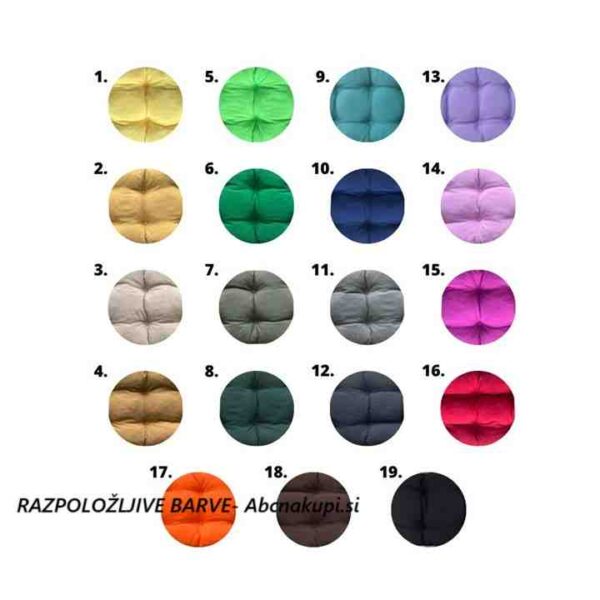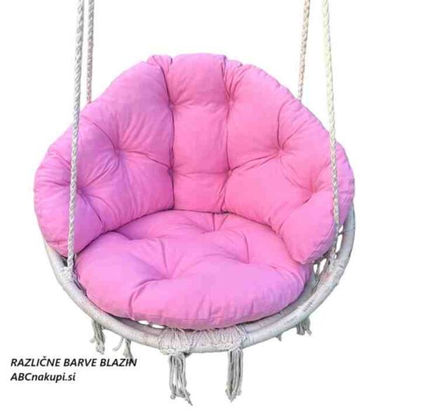 Visokokakovostna, mehka in puhasta blazina ni namenjena samo za gugalne stole. Ta prešita sedežna blazina z bombažnim blazino zagotavlja visoko raven udobja. Blazina je sestavljena iz dveh delov, tako da se popolnoma prilega gugalnici / visečemu stolu. Mednarodna oznaka tekstilne varnosti. Izdelki s tem certifikatom so varni in brez škodljivih snovi v koncentracijah, ki negativno vplivajo na zdravje ljudi, m.in. pesticidi, klorofenoli, formaldehid, alergena barvila, prepovedana azo barvila in ekstrahirane težke kovine.