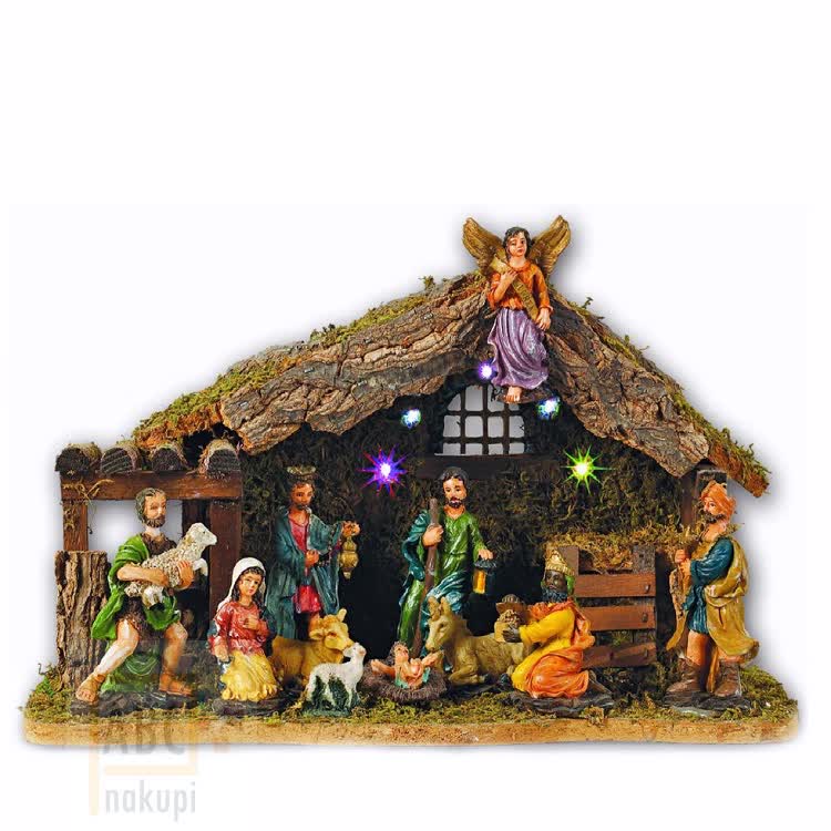 Božične jaslice sestavljajo hišica ali koliba ter sveta družina. Sveto družino pri božičnih jaslicah sestavljajo Marija z Jezusom, Sv. Jožef in trije kralji. Okrog postavimo še ovčke, kravo in oslička. Postavite svoje jaslice in popestrite božično vzdušje s svetlečimi jaslicami in 9 figuricami z lučkami.
