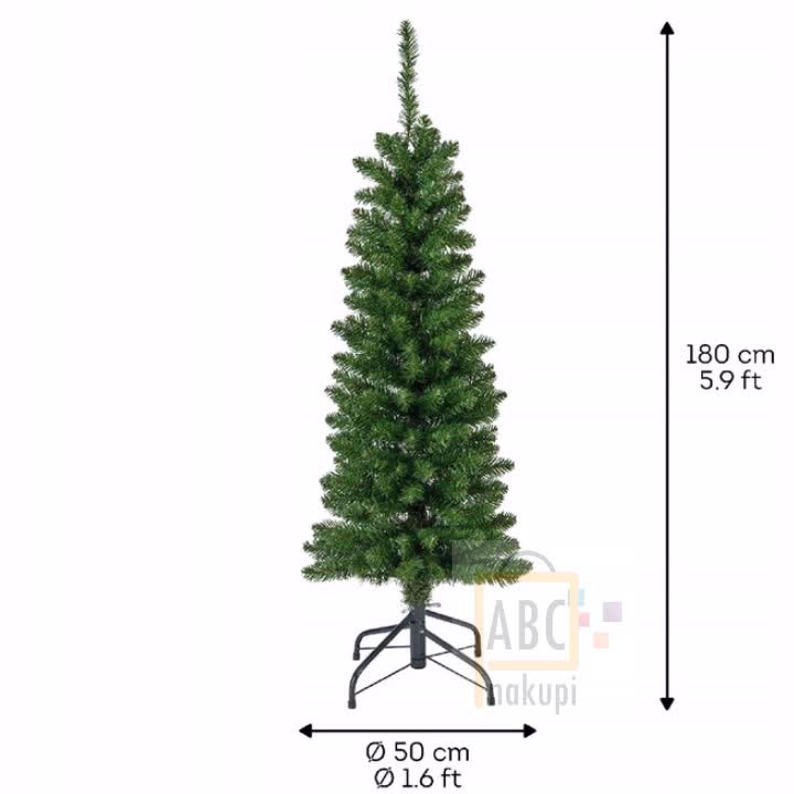 BOŽIČNO VITKO DREVO S KOVINSKIM STOJALOM, UMETNO 180 cm