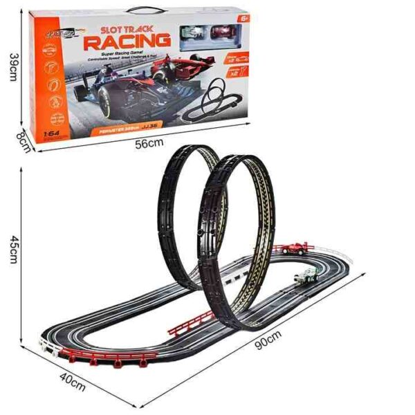 Predstavljamo vam razburljivo otroško dirkalno stezo (Tor Formula1). Vaš otrok se lahko igra sam, ali povabi prijatelja, da bo dirkanje po avtocesti bolj zabavno. Avto nadzorujete preko daljinca. Dolga ravna steza vas spodbudi, da čim bolj pritisnete na daljinca. Toda v ovinkih morate biti zelo previdni: kdor preveč pritisne na plin, bo odletel s steze! Avtomobili dirkajo na progah z zankami, ki se obračajo za 360 stopinj! Naj se zabava začne!
