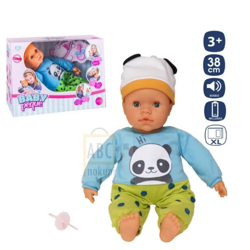 Dojenček Baby Peque velikosti 38 cm, kateri oddaja prikupne zvoke: smeh, jok, smrčanje… Izdelan je iz mehke plastike.