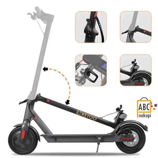 Pritisnite gumb in po 3 sekundah se bo skuter raztegnil in pripravljen za vožnjo. Ko prispete na cilj, preprosto znova pritisnite gumb in vozilo se bo prav tako hitro zložilo. Ko je zložen, ga je mogoče udobno prevažati ali shraniti. Skupna teža je le 12 kg.