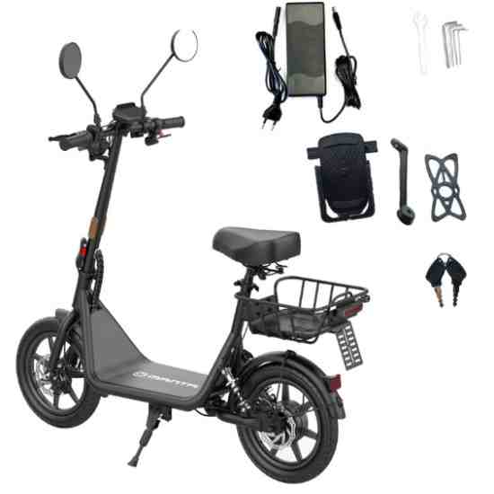 - Lastnosti in funkcije: velike 14” napihljive pnevmatike, močan 500W motor, ogromna baterija 48V 13.5Ah, doseg do 40 km z enim polnjenjem, prednja in zadnja ventilirana disk / kolutna zavora, dvojno zadnje vzmetenje, 3 načini vožnje, odklepanje / odklepanje s priloženim ključem, stranska vzvratna ogledala, nosilec za telefon, velik in pregleden zaslon, nosilnost do 120 kg,…
