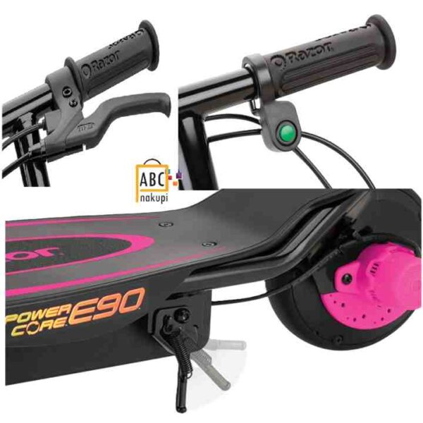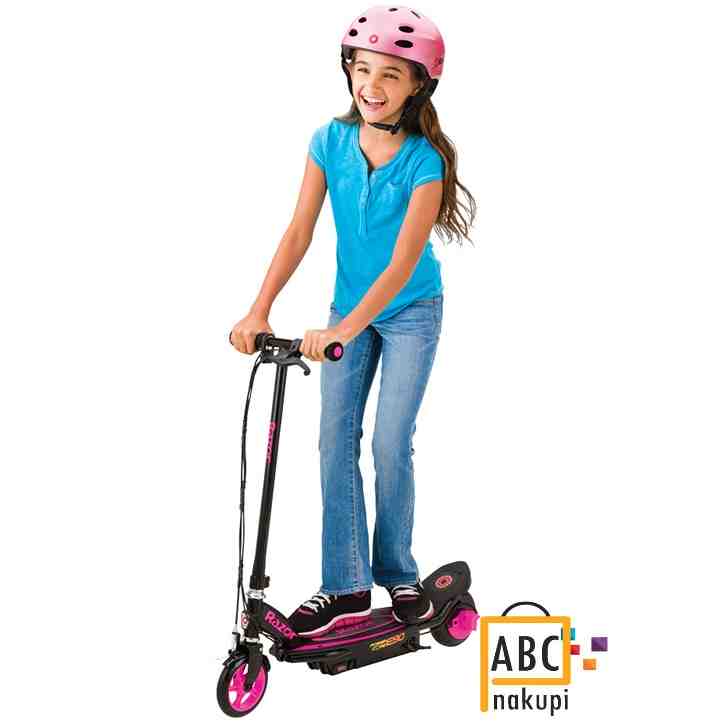 E90 se ne zažene takoj. Najprej morate potisniti (do hitrosti približno 5 km/h) in šele nato vklopiti motor. Vse to zato, da otrok ne izgubi ravnotežja, ko se nenadoma trza, in da se skuter ne odpelje, preden lahko pridete na njega. Naslednja stvar je hitrost. Večina proizvajalcev se ponaša z največjo zmogljivostjo svojih skuterjev. Ne. Zakaj? Ker menimo, da je hitrost 16 km/h za šest, sedem ali osemletnega otroka popolnoma zadostna. To je dovolj hitrosti, da občutite veter v laseh, vendar še vedno prilagojeno otrokovim sposobnostim. Seveda moramo poskrbeti, da se otrok vozi v čeladi!