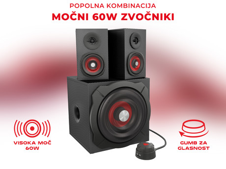 2.1 prostorski zvok s skupno močjo 60W RMS