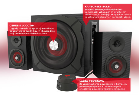 GENESIS Gaming stereo 2.1 zvočniki HELIUM 600, 3.5mm, vrhunski bas in zvok, daljinec, leseno ohišje, 60W RMS