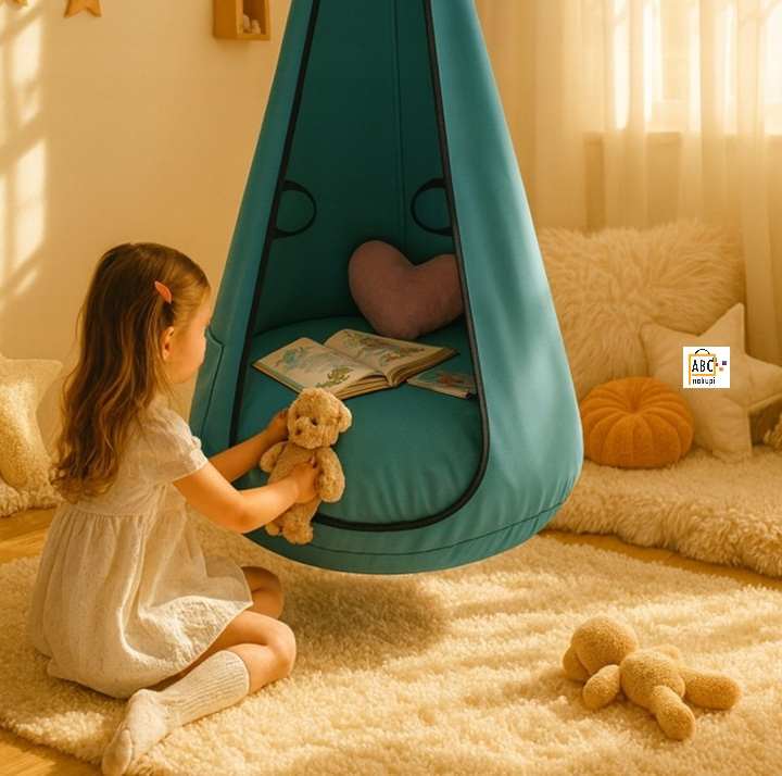 Izolacija od zunanjih zvokov naredi kokon idealen kraj za brskanje po knjigah in poslušanje pravljic, kar spodbuja razvoj bralne navade. Nežno zibanje spodbuja občutek ravnotežja, sprošča živčni sistem in pomaga otroku, da se pomiri po pretiranem številu dražljajev. Tkanina izpolnjuje stroge evropske standarde za kemično varnost in je varna za zdravje uporabnikov.
