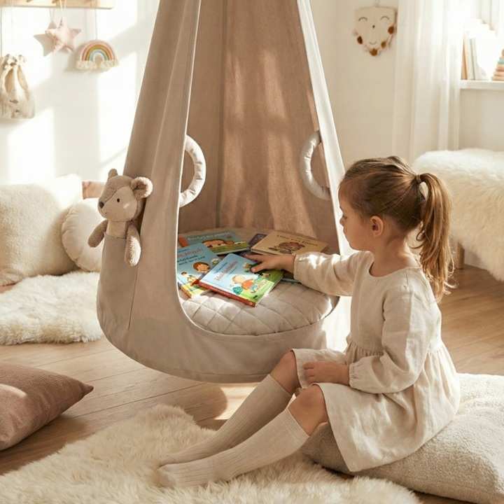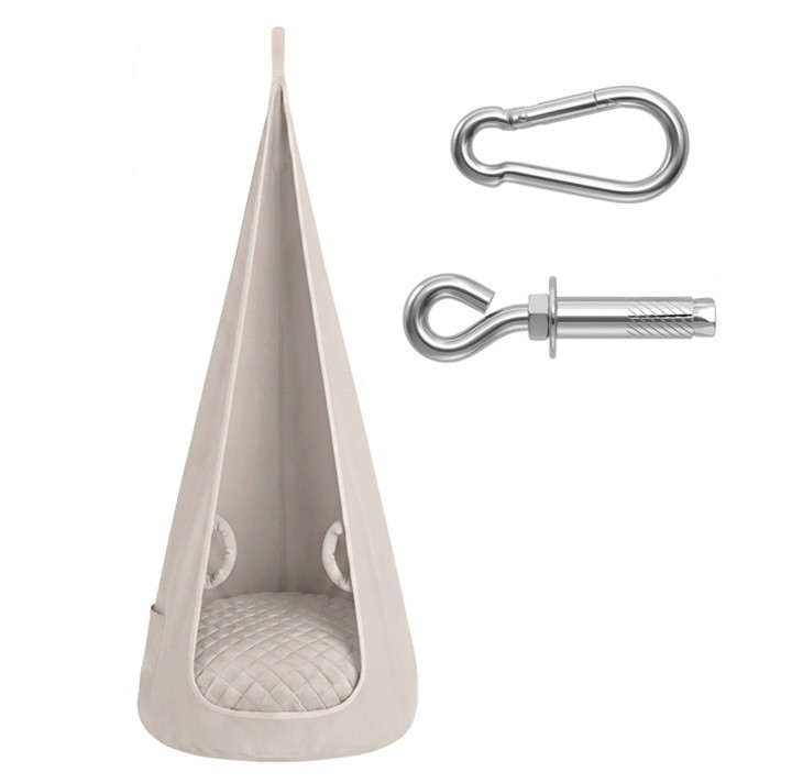 Gugalnica gnezdo/kokon je priročna izbira za vaš vrt ali sobo. Kokon/gugalnica vas bo presenetila s svojim udobjem in velikostjo. Otroci sedijo na krogu, ki je dovolj velik, da se lahko gugajo v sedečem ali ležečem položaju. Izdelek je mogoče uspešno prati v pralnem stroju, tako v kokonu kot v blazini. Priporočamo nežno pranje pri temperaturi do 40°C, 800 obratov na minuto. Ne uporabljajte belila ali močnih kemikalij.Tkanina izpolnjuje stroge evropske standarde za kemično varnost in je varna za zdravje uporabnikov. Varnost sestave: Brez škodljivih azo barvil (AZO). Materiali in polnila, ki jih uporabljamo, so popolnoma varni in prijazni do občutljive otrokove kože.