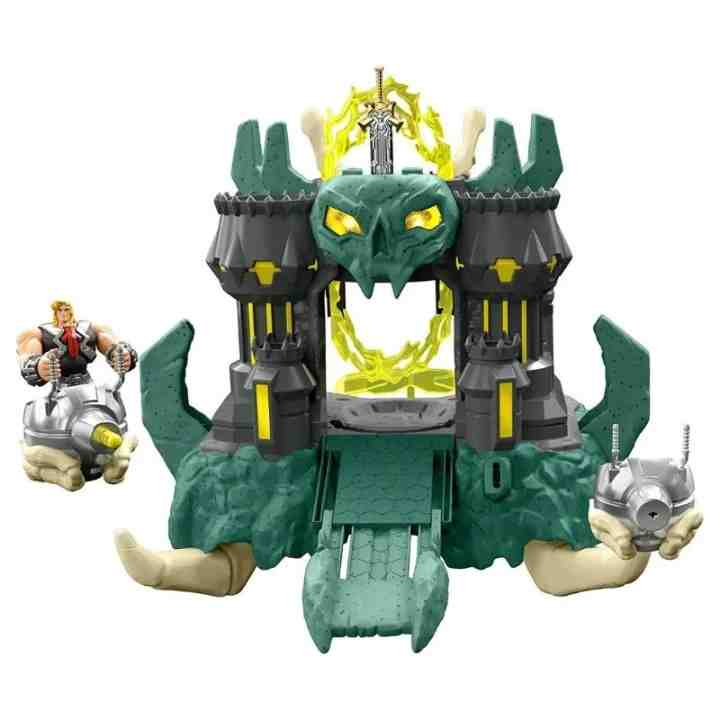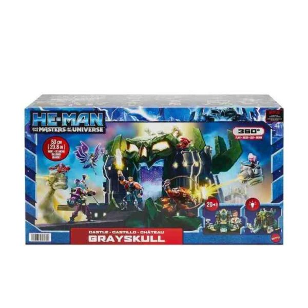 He-Man in gospodarji vesolja sta legendarni igrači iz risanih serij, ki je osvojila srca generacij po vsem svetu. Grad sive lobanje s svetlobo in zvokom, ki ga je produciral Mattel je eden najbolj nepozabnih in najbolj znanih elemento. Ta impresivni grad je ikonična trdnjava zlobnega Skeletorja, glavnega negativca v svetu He-Mana. S sivo lobanjo kot prevladujočim elementom grad izžareva temačno vzdušje in napetost. Zraven videza je grad opremljen z lučmi in zvoki ki še dodatno poudarjajo dramatičnost njegove prisotnosti. Zvoki ki prispevajo k vzdušju, vključujejo močne zvoke, zlovešče prevare in napeto glasbo, medtem ko luči osvetljujejo grad in prispevajo k izkušnji. Grad Sive lobanje s svetlobo in zvokom ni samo impresiven kos igrače, ampak tudi simbol, ki oživi domišljijo in pustolovski duh, ki sta značilna za franšizo He-Man in Masters of the Universe.