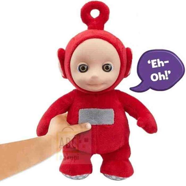 Pridružite se zabavni, navihani in pisani druščini Tink Binki (vijolični), Dipsi ( zeleni), Lili ( rumena) in najmlajša Po (rdeča) na njihovi naslednji veliki pustolovščini. Narejeni so iz mehkega pliša, tako da jih lahko otrok nese s seboj spat ali si popestri igo. PO naša najmlajša iz družine Telebajskov, ki ima na anteno v obliki mehurčka in ob pritisku na trebuh govori (Ang.). Z originalnimi zvočnimi učinki Teletubbies. Maskota je mehka in plišasta, razen plastične glave.