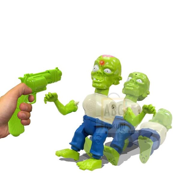 Pozor, Zombiji so oživeli. Pred njimi ni varen nihče. Obrani se pred njimi s pomočjo laserske pištole. Vsakič, ko ga 3 krat zadeneš mu odpade ena roka, ko ga ustreliš še 3 krat mu odpade tudi druga roka. Ko ga boš devetkrat zadel, bo Zombi padel na tla in bo premagan. Pištola ima domet 4,5 m.
