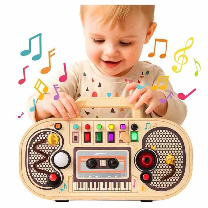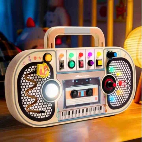 Radijska manipulacijska plošča je darilo, ki ne le ugaja, ampak se tudi otroci ob njej razvijajo. Kot nalašč je za rojstne dneve, praznike, otroški dan ali preprosto, kot način za vsakodnevno, dragoceno zabavo. Zasnovana po Montessori metodi, je tabla opremljena s stikali, gumbi, gumbi, vzvodi in LED lučmi, ki spodbujajo raziskovanje. Vsak element je pomemben – malček se nauči vzročno-posledičnih razmerij in razvije koordinacijo roka-oko. Dodatni senzorični elementi, kot je labirint s figurico, pritegnejo pozornost in spodbujajo ustvarjalnost.