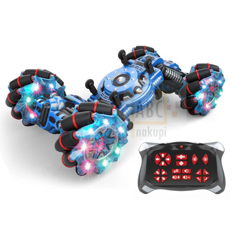 KASKADERSKI AVTO R/C (DALJINSKO UPRAVLJANJE), LED OSVETLITEV, MODER, RDEČ