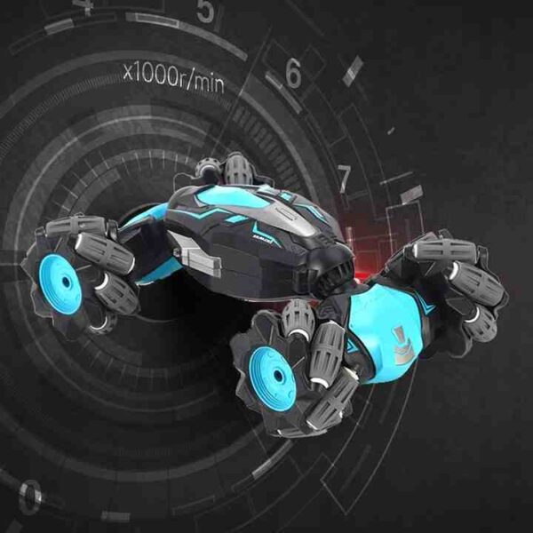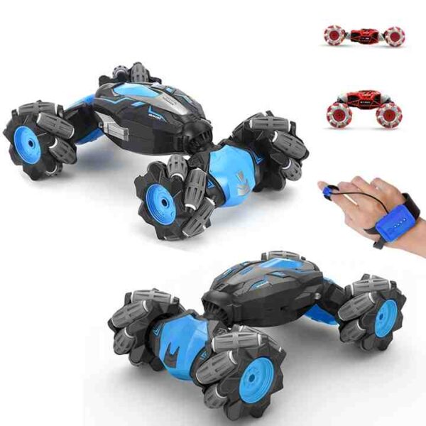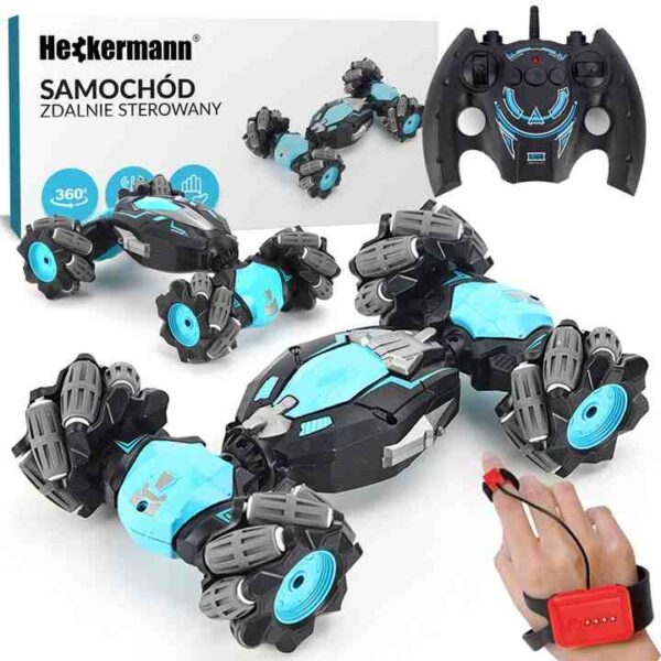 Daljinsko vodeni avtomobil je za vse, ki obožujejo hitre in kaskaderske vožnje. Ogrodje je izdelano iz posebnega materiala, odpornega na udarce. Ročno vodeni avto je način za dobro zabavo v prostem času. Izdelek bo prinesel veliko zabave, saj ga je mogoče upravljati na 2 načina – tradicionalni daljinec (igralna palica) ali inovativen daljinski upravljalnik v obliki ure, zahvaljujoč kateremu vozilo upravlja z roko oz prstom! Premikanje avtomobila s krmilnikom, ki je nameščen na roki, je zelo preprosto in bo nedvomno prineslo veliko zadovoljstva! Daljinec je možen zahvaljujoč oddajniku, ki deluje na frekvenci 2,4 GHz, kar omogoča širok razpon delovanja. Ročno vodeni avto odlikuje dejstvo, da se lahko premika v katerokoli smer in lahko izvaja prave kaskade, vrtenja in kakršne koli obrate. Igrača zlahka premaga ovire – vožnja tega avtomobila je res zabavna.