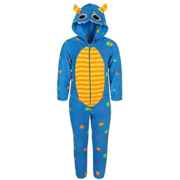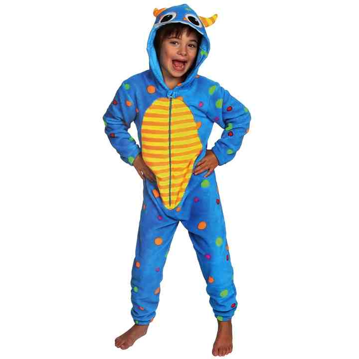 Plišasti kombinezon v obliki modre pošasti je primeren za otroke, ki obožujejo fantastične like in želijo udobno oblačiti med igro ali posebne priložnosti. Oblikovan je za otroke višine 98-104 cm, kar ga naredi popolnega za predšolski otroke. Kombizon je večnamenski – lahko ga uporabite kot pižamo, kostum za pustovanje ali preprosto kot udoben oblačilni kos za igro doma.