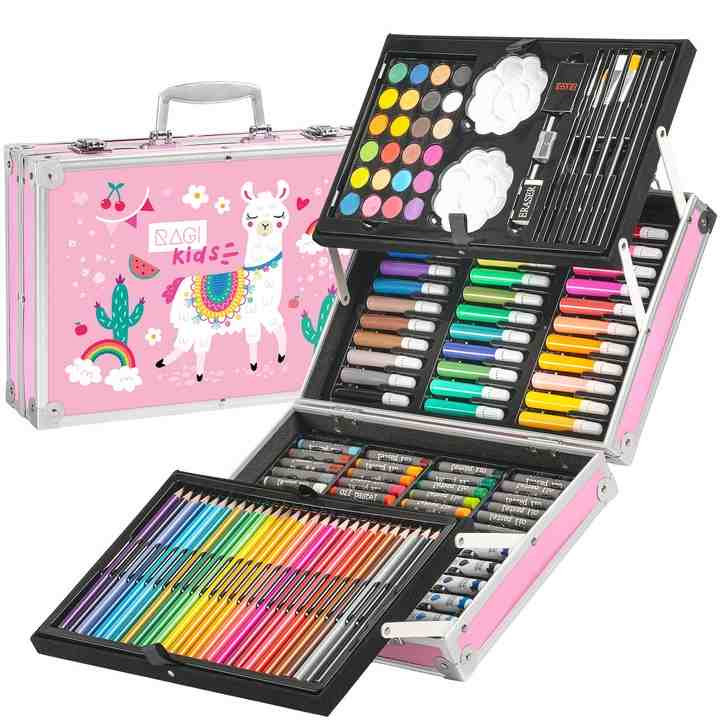 Umetniški 145 delni komplet je odlično darilo za otroke, ki radi ustvarjajo svoje posebne risbe – umetnine. Vsebuje veliko pripomočkov, ki podpirajo ustvarjalnost in uresničevanje različnih idej.Čisti označevalci se dobro prilegajo majhni roki in risanje z njimi je užitek. Dve vrsti barv s čopiči in mešalnimi paletami sta komplet, s katerim lahko ustvarite več kot eno delo. Celoto dopolnjujejo pastelne barve, ki ponujajo vrsto ustvarjalnih možnosti. Barvice, barve, pasteli, markerji in dodatki – vse zaprto v barvitem kovčku s predelki, zahvaljujoč katerim lahko otrok brez težav vzdržuje red in odnese komplet, kamor koli želi. Popolno darilo za otroški dan!