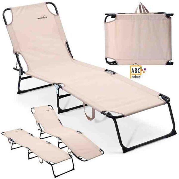 Odličen univerzalni počivalni in ležalnik, primeren tako za vrt kot za plažo, saj se lahko na njem sončite na vrtu, na terasi, balkonu ali na plaži. Vrtni ležalnik v bež barvi. Možnost nastavitve udobnega položaja sedenja za udobno uporabo. Ležalnik vam bo omogočil, da se za nekaj časa sprostite, tudi v ravnem položaju. Uporabljamo ga lahko tako na vrtu kot zahvaljujoč možnosti zlaganja pa ga lahko vzamemo s seboj na plažo, izlet ali kampiranje. Možnost nastavitve štirih položajev bo omogočila priročno in udobno uporabo, ležeči položaj pa bo zagotovil sprostitev na plaži.