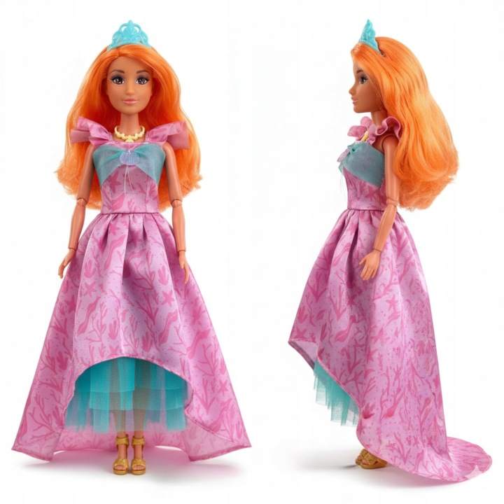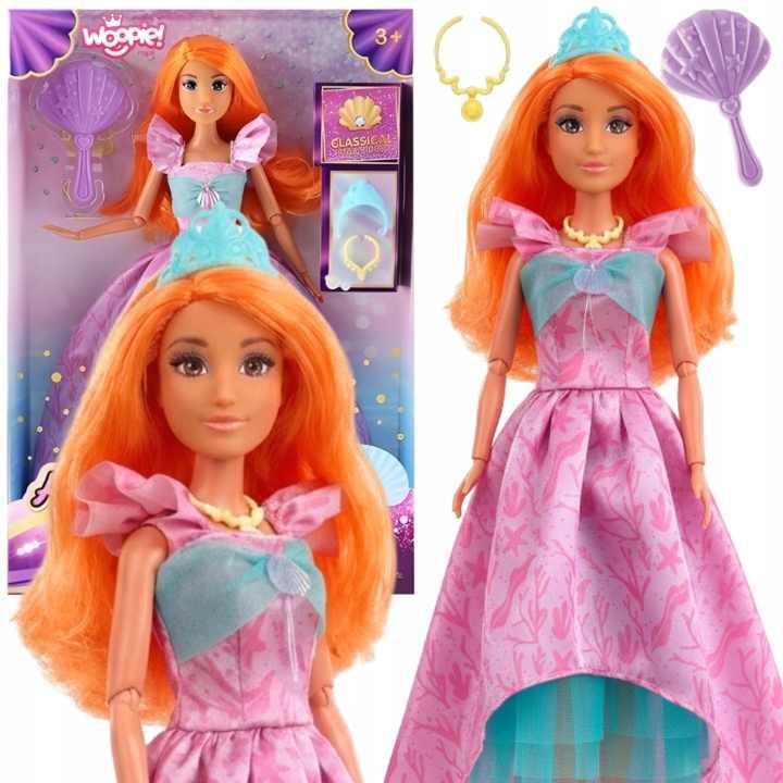Spoznajte edinstveno punčko princeso Lily– pravo kraljico pravljičnega sveta! Oblečena v bleščečo pastelno obleko in z dolgimi, rožnatimi lasmi , ki jih je mogoče krtačiti in oblikovati, Lily očara z eleganco in gracioznostjo. Komplet vsebuje vijoličen glavnik z morsko školjko in prstan z dragulji, ki poudarjata njen kraljevski značaj. Ta punčka ni le čudovita igrača, temveč tudi način za razvoj otroške domišljije in ustvarjalnosti. Popolno darilo za majhnega ljubitelja pravljic in princes!