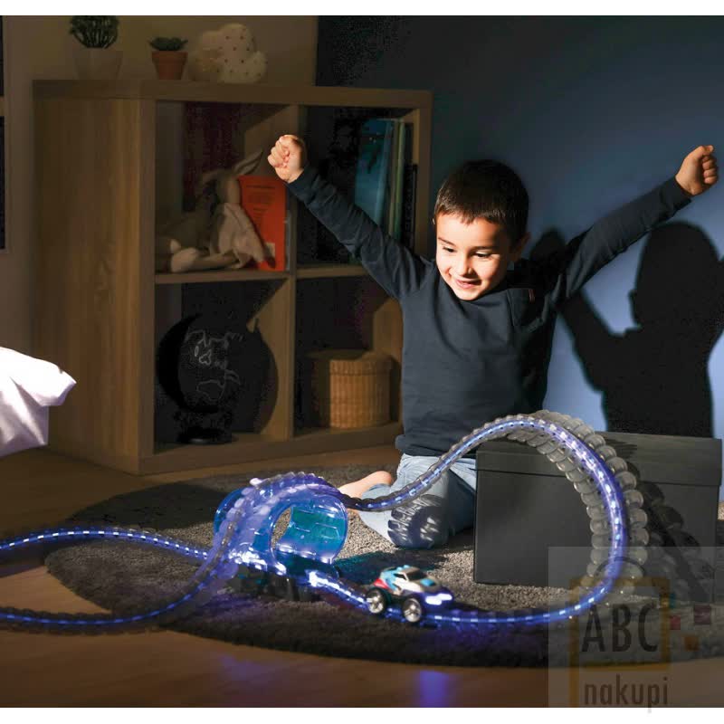 -Priložena je LED lista, na kateri je zgrajena proga, zahvaljujoč kateri sveti po celotni dolžini izdelane trase in tunel z električnim modulom