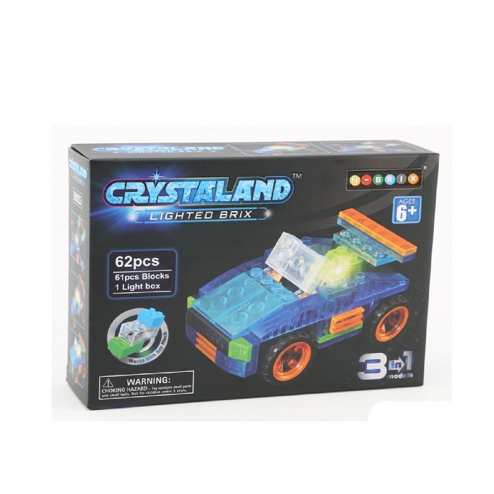 Naj se dirka začne s tem mogočnim avtom Crystaland 3/1. Ta avto bo nudil otrokom veliko zabave pri njihovi igri. Crystal kocke so raznobarvne. Set vsebuje 62 kosov, ena kocka je z lučko, katera daje celotni konstrukciji poseben svetlobni učinek. Ta model sestavljanke LED, 3 /1, je poseben, saj malčkom omogoča izdelavo različnih oblik. Kocke se lahko kombinirajo z vsemi podobnimi Crystaland kockami.
