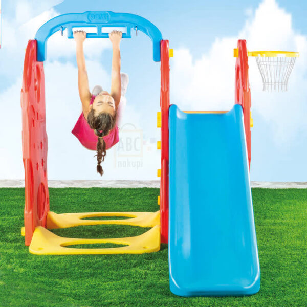 Iščete nov tobogan in zraven še dobite košarkarski obroč, gugalnico z varnostnim zapenjanjem in palico za dviganje svojega telesa. V naši spletni trgovini vam ponujamo čudovito igračo za vaše otroke, ki naenkrat lahko uživajo na igrišču in pri tem se zabavajo z raznimi aktivnostmi. Zabava za več otrok naenkrat.