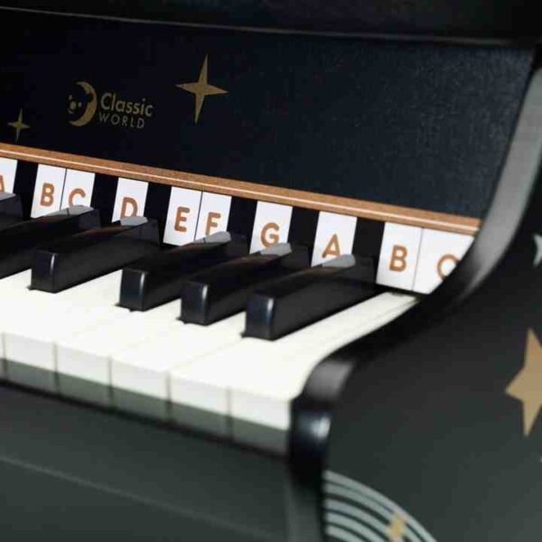 Popoln začetni instrument za male glasbenike z majhnimi prstki, ki hrepenijo po igranju. Ustvari melodije s tem pianom narejenim iz lesa. Klavir je odličen, saj je narejen iz lesa, ki je pobarvan v črno in obdan z zvezdami. Zvok ki prihaja iz klavirja je zelo čist. Klavir iz Classic World je veliko več kot navadna igrača, kakovost izdelave vas bo navdušila. Namenjeno najmlajšim skladateljem od 18. meseca starosti.