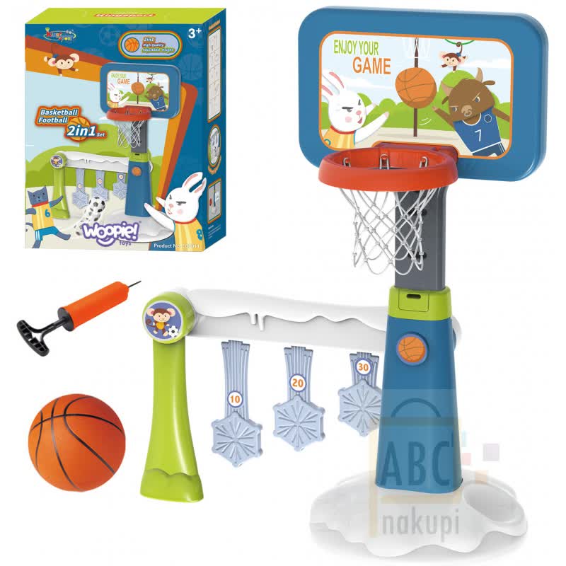Košarka ali nogomet sta odlični igri z žogo pri kateri bodo vaši otroci uživali na zraku in se hkrati družili s prijatelji. S tem setom se bodo otroci seznanili s to čudovito igro nogometa ali košarke. V polju za gol je ščit za točkovanje, zmaga tisti, ki doseže največ točk. Komplet bo vašega otroka zagotovo spodbudil k športu. Dejavnost bo vašemu otroku omogočila razvoj in odlične motorične sposobnosti, kar je idealno za pravilen razvoj otroka. Velik plus je, da se izdelek lahko uporablja tako v zaprtih prostorih kot na prostem. Vaš otrok se bo lahko igral povsod, ne glede na vreme. Izdelek je izdelan iz najkakovostnejših, okolju prijaznih materialov in je popolnoma varen za zdravje otroka.
