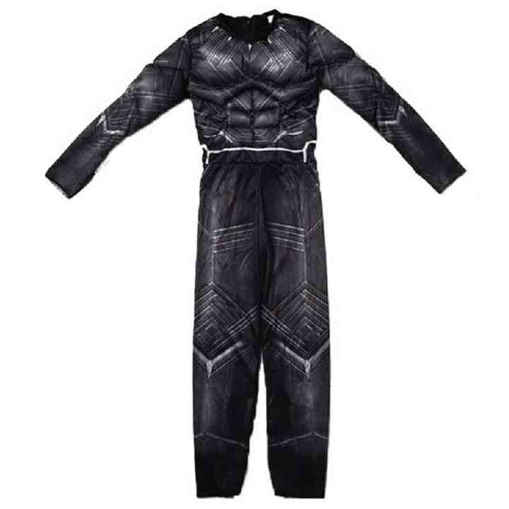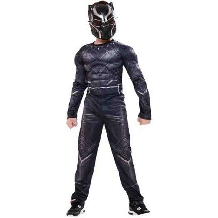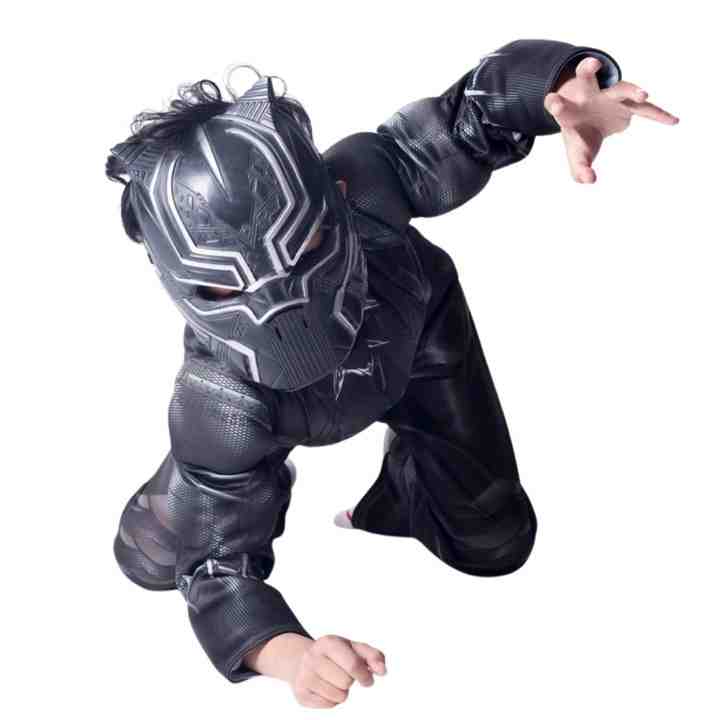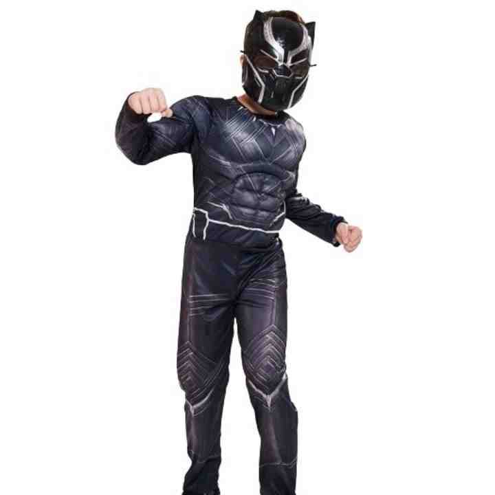 Otroški kostum črni panter je namenjen otrokom za popolno preobrazbo v pustnem času ali ob kateri drugi zabaviSprosti domišljijo in se preobrazi v filmskega super junaka. Enodelni kostum Black Pantherja je bil dobro izdelan. Rahlo elastična, pritrjena z zadrgo. Maska junaka iz lahke in oblikovane plastike ne obremenjuje otrokove glave. Zraven tega je maska opremljena z lučmi, ki ob pritisku na gumb svetijo rdeče in modro oči. Oči maske so zaključene z obarvano plastiko, zaradi česar maska še bolj spominja na lik superjunaka. Kombinezon je opremljen z blazinami, ki posnemajo silhueto superjunakamišičast prsni koš, trebuh in roke dajejo realizem malemu junaku in hkrati zagotavljajo dodatno zabavo.