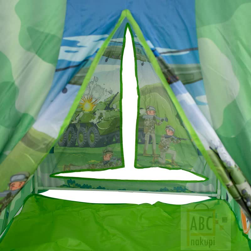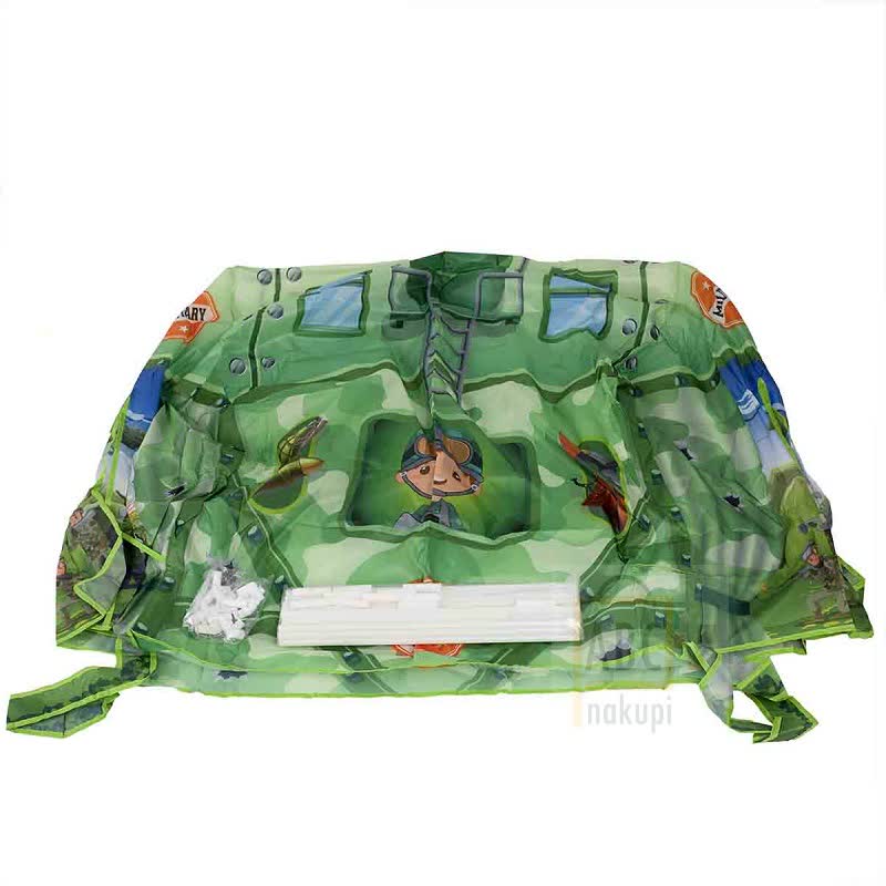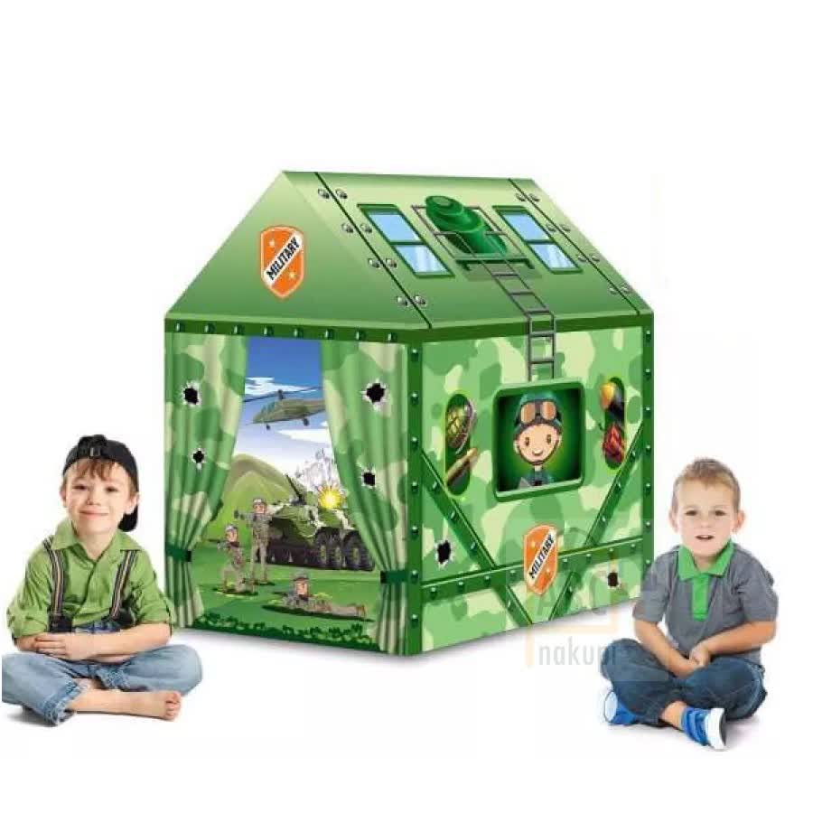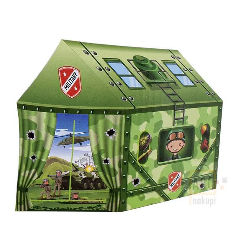 Šotor v obliki vojaške hiše za male in velike fante, ki se radi igrajo vojake. Verjetno je vsak malček vsaj nekaj časa sanjal o tem, da postane komandos. Mali in malo večji fantje radi gradijo svojo bazo in se igrajo v vojni. Vojaška hiša je izdelana iz trpežnega materiala, zato bo vzdržana veliko bitki in vojn. Hiša je okrašena z vojaškimi motivi, ki bo pretegnila vsakega otroka.