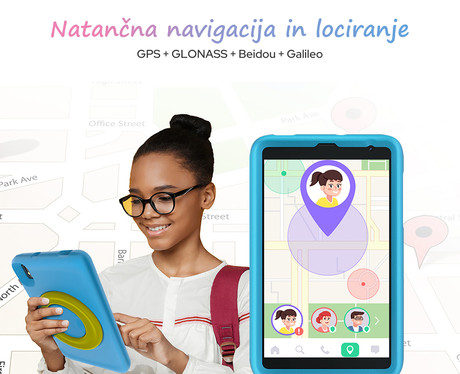 Tablica Tab 6 Kids podpira navigacijo GPS, GLONASS, Beidou in Galileo, ki pomaga vašim otrokom, da poznajo svoj položaj in se ne izgubijo, hkrati pa jih lahko lažje najdete tudi vi. Bodite brez skrbi za svoje njih in jim hkrati omogočite pravo svobodo gibanja!