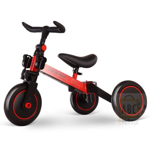 Tricikel 3/1 je odličen za otroka, saj združuje številne funkcionalnosti v eni napravi. Primeren za voziti s 3 kolesi ali preklopite na dva kolesa. Posebnost tricikla/ dvokolesa je, da lahko zadnji par koles približamo drug drugemu, skoraj jih združimo v eno široko kolo. Ta izdelek se torej lahko uporablja kot tipično ravnotežno kolo. Z razvojem našega otroka lahko funkcionalnost kolesa razširimo z razpletom pedalov za pogon sprednjega kolesa. Tricikel jim bo dal samozavest in varnost, tako da se bodo sčasoma zlahka usedli na kolo. Pri vožnji obvezno uporabi čelado, da boš varno prispel na cilj!