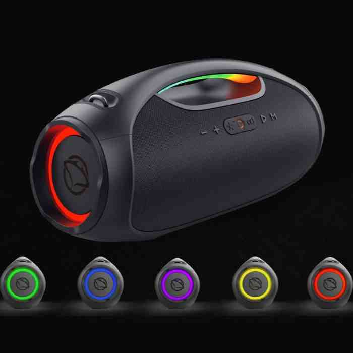 – RGB LED osvetlitev – Prednost pred ostalo konkurenco zvočniku daje tudi atraktivna RGB LED osvetlitev v več različnih barvah in načinih, ki vam ustvari pravo »party« vzdušje. Osvetlitev na vrhu in ob straneh zvočnika bo popestrila vsak prostor in zabavo!