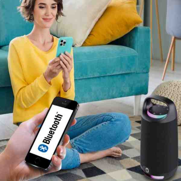 • RGB LED osvetlitev – Prednost pred ostalo konkurenco zvočniku daje tudi atraktivna RGB LED osvetlitev v več različnih barvah in načinih, ki vam ustvari pravo »party« vzdušje. Osvetlitev na vrhu in na dnu zvočnika bo popestrila vsak prostor in zabavo!