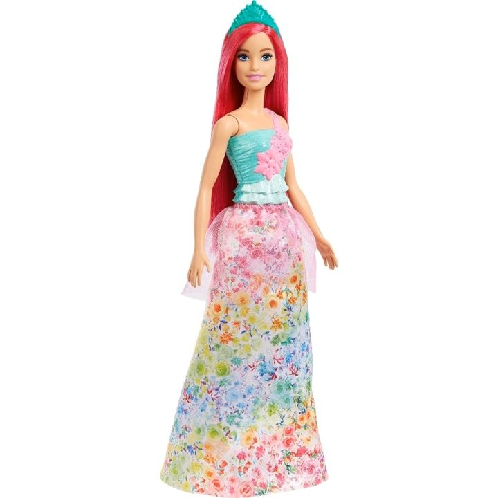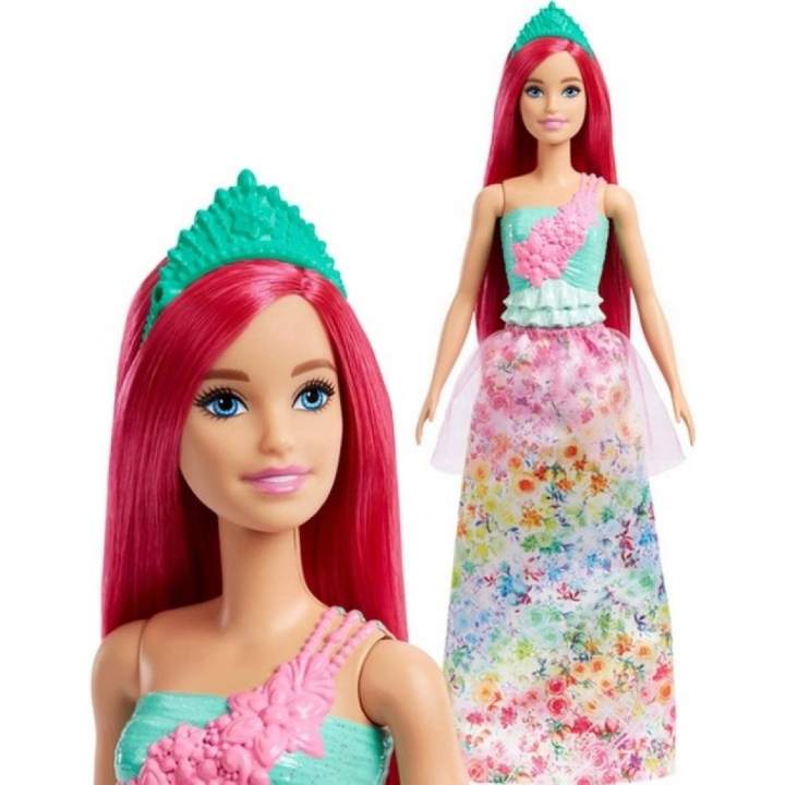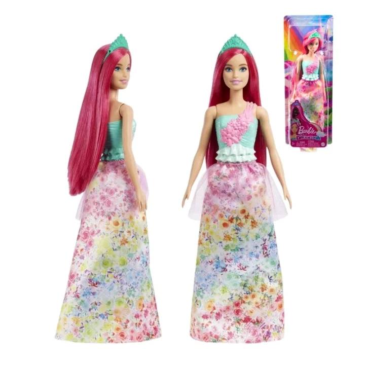 Punčka Barbie – princesa prinaša svet čarobnih zgodb in kraljevskih dogodivščin! Ta čudovita punčka je oblečena v svetleči steznik s cvetličnimi detajli. Njeno dolgo krilo je prekrito z igrivim cvetličnim vzorcem in ima čudovito obrobo iz tila. Punčka ima dolge, temno rožnate lase, na katerih nosi snemljivo turkizno tiaro z dragulji. Njen kraljevski videz dopolnjujejo barvno usklajeni čevlji. Z živahnimi barvami in pravljičnimi detajli je ta princeska odlično darilo za otroke, ki radi ustvarjalno igro in pripovedujejo čarobne zgodbe.