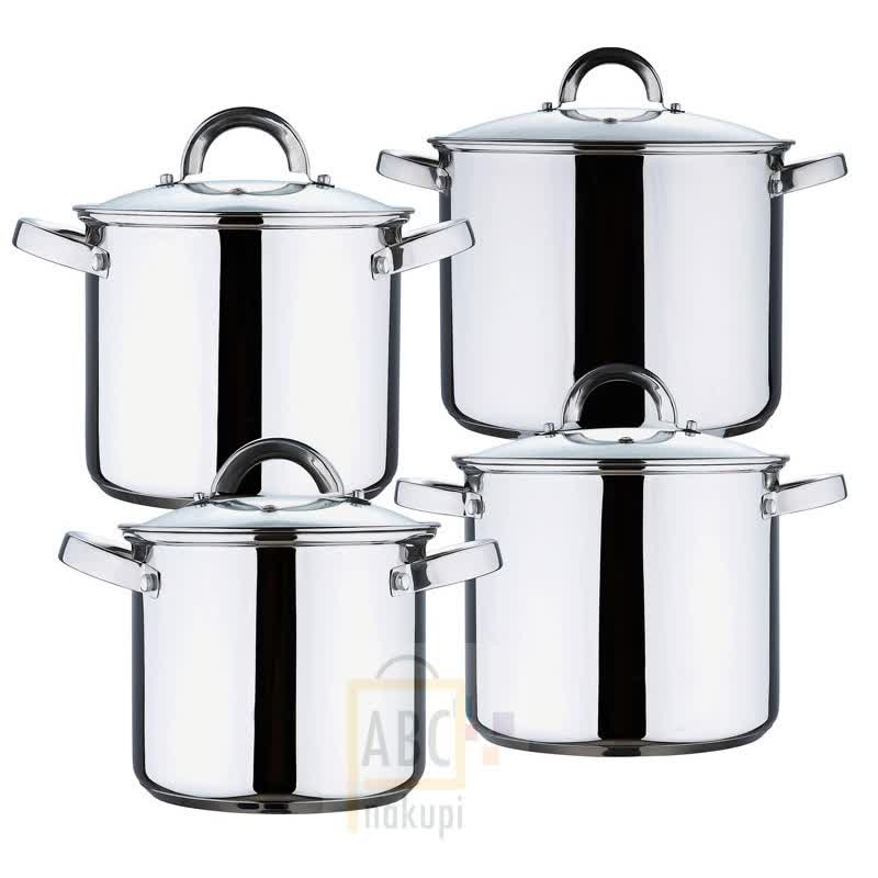 Set visokokakovostnih inox loncev s pokrovkami 8/1 Bergner z ergonomsko oblikovanimi ročaji, dnom iz aluminija. Loncipa so narejeni z visoko kakovostnega nerjavečega jekla in so primerni za vse ogrevalne površine vključno z indulcijo.