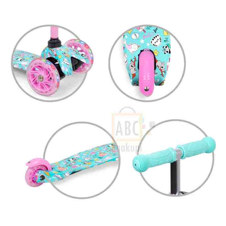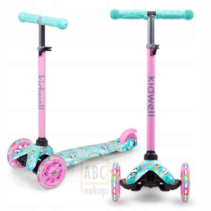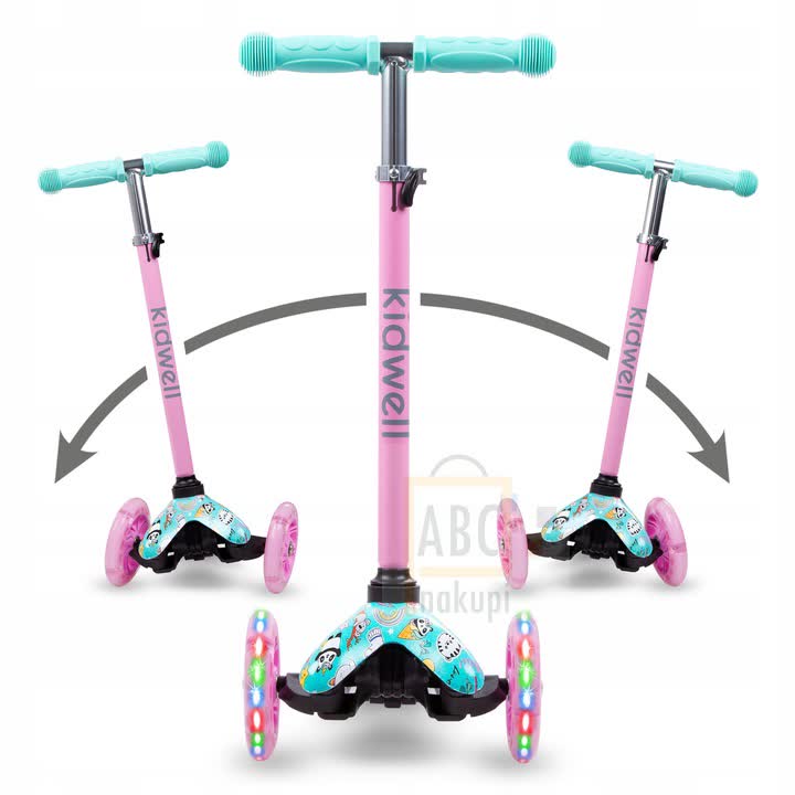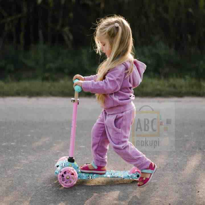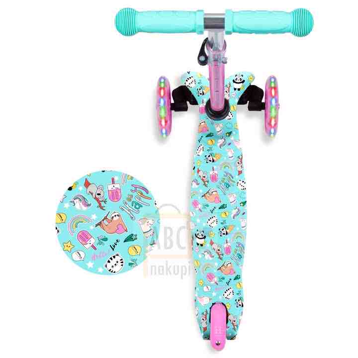 Model Happy, je trikolesni skuter pomaga pri ravnotežju- je najboljši za začetnike- enostaven za vožnjo- stabilen in lahek. Tiha in trpežna poliuretanska kolesa zagotavljajo zelo dober oprijem na tleh. LED diodevgrajene v kolesa, svetijo med zabavno vožnjo.Pri vožnji obvezno uporabi čelado, da boš varno prispel na cilj!
