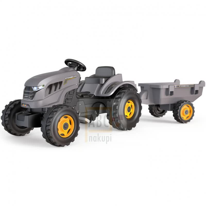 Otroška vozila na pedale otroke razveseljujejo že leta in zato smo za vas pripravili cenovno ugoden otroški siv traktor na pedala, ki ima zadaj prikupno prikolico in ga poganjaš na pedale. Traktor Smoby na pedala je velikosti:161 x 59 x 56 cm. Kompakten traktor s prikolico je enostaven za vožnjo in bo navdušil vse malčke.