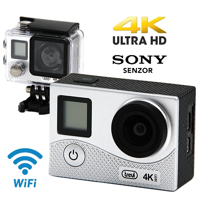 Športna kamera je opremljena z dvema zaslonoma, 170° vidnim kotom, vgrajen ima kakovosten Sony senzor in snema video posnetke v ločljivosti 4K Ultra HD, fotografije pa zajema z ločljivostjo 16 MP. Priloženo vodoodporno ohišje omogoča potapljanje do globine 30 metrov, vgrajen mikrofon pa omogoča snemanja zvoka. Športna kamera se lahko uporablja tudi kot spletna kamera!