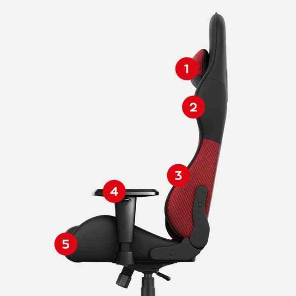 Force Huzaro 6.2 rdečo/črni je stol z majhnimi dimenzijami in velikim potencialom. Na mestih, kjer se telo drži stola, je uporabljen material iz debelih niti, zelo trpežen in udoben. Zahvaljujoč zasnovi luknje material omogoča prehod veliko več zraka.