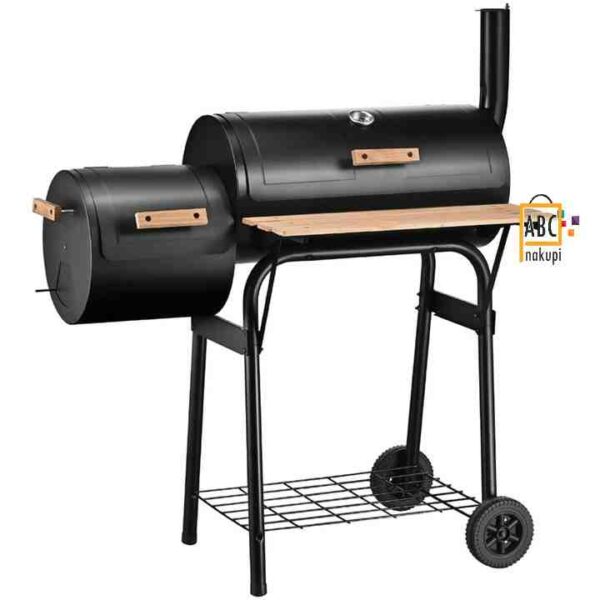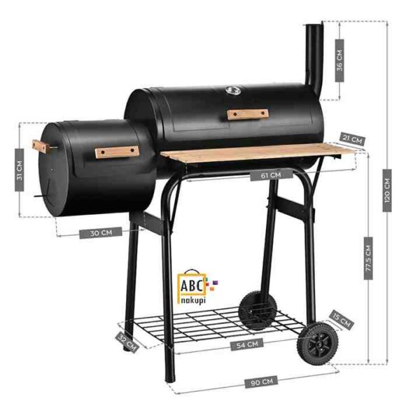 Dve polici, ki olajšata pripravo jedi. Spodnja mreža je idealen kraj za dodatke za žar. Lesena polica, na katero lahko postavite hrano, ki jo postavite na žar. Vrtni žar z dimnico je opremljen s kolesi, zaradi katerih ga lahko enostavno premaknete na želeno mesto. Lesen izoliran ročaj na strani žara omogoča varno premikanje žara tudi po tem, ko je prižgan.