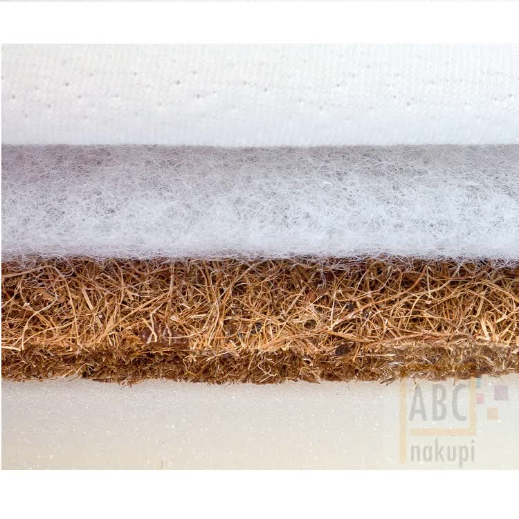 -Polnilo ležišča je sestavljeno iz dveh kokosovih podstavkov ( 2 x 1 cm ), ovitih s puhastim netkanim blagom, ločenih s poliuretansko peno ( 7 cm ).
