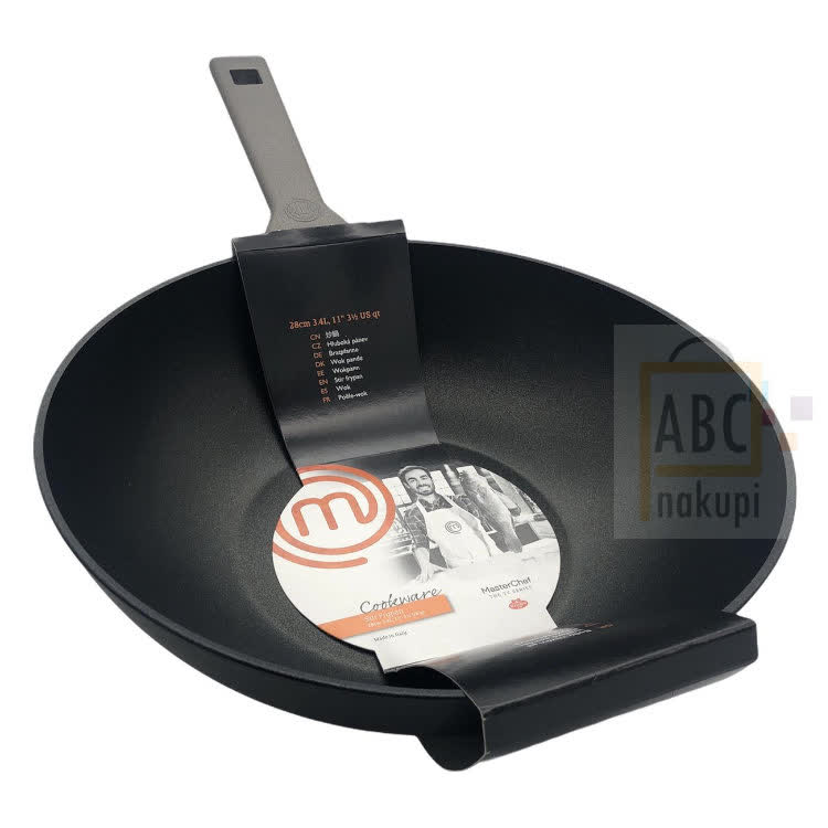 Masivni profesionalni Wok Masterrchef je izdelan v Italiji. Wok zagotavlja odlično toplotno prevodnost, kar prihrani energijo in čas pri kuhanju. Wok Ima edinstven premaz proti prijemanju hrane, ki preprečuje mehanske poškodbe. Pri kuhanju se toplota enakomerno razporedi po celotni površini ponve.