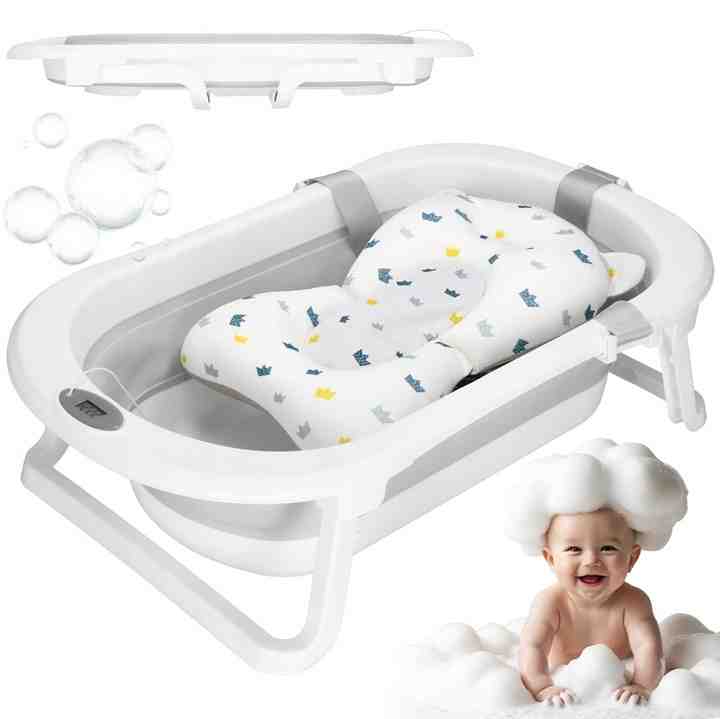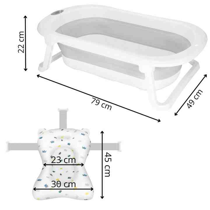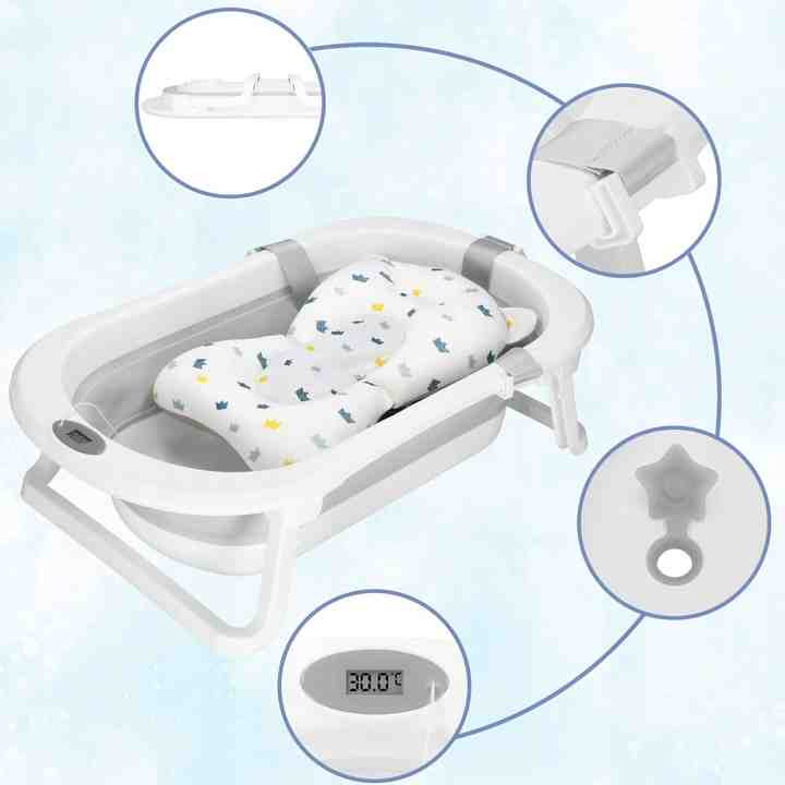ZLOŽLJIVA OTROŠKA BANJICA S TERMOMETROM IN BLAZINO, sivo/bela