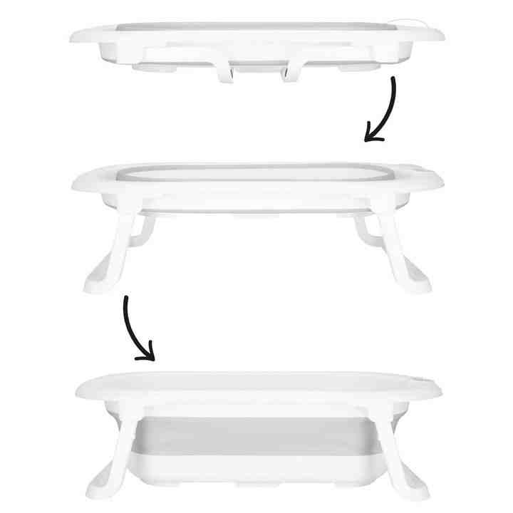 Kad za kopanje dojenčka velikosti 79 x 49 x 22cm, sivo/bele barve z termometromnastavkom za tuš in praktično blazino vam bo olajšala kopanje vašega dojenčka. Blazino lahko enostavno odstranitein zahvaljujoč temu bo kad primerna za otroke do 3. leta starosti. Velika prednost banjice je njeno hitro zlaganje.