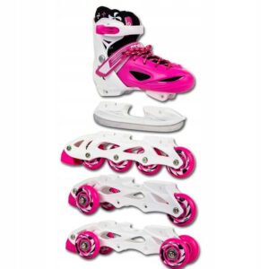 Otroški rolerji-kotalke in drsalke 3v1 ponujajo zabavo skozi vse leto. S samo enim pritiskom na gumb lahko preprosto in hitro prilagodimo velikost in potrebo glede na vreme (drsalke,kotalke ali rolarje). Ne pozabi pa na zaščito glave,kolen in komolcev. Velikost: 35-38 cm.