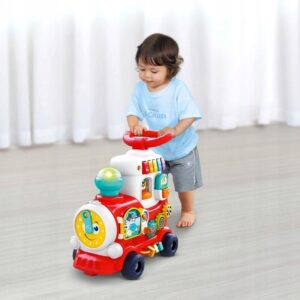 Lokomotivo je neverjetna igrača in bo vašemu otroku zagotovo prinesla veliko igranja in veselja. Igrača posnema vlak (lokomotiva z vagonom), med gibanjem ustvarja značilne zvoke; piščalka, kroženje koles. Snemljivi vagon deluje kot stabilen sedež. Igrača spodbuja ustvarjalno igro, ki prispeva k razvoju domišljije.