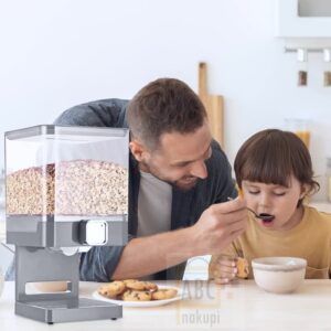 Dozirnik za žitarice na stojalu s posodo 3,5 l je prava stvar za pripravo zdravega zajtrka z žitaricami.Idealna rešitev za organizirano in pospravljeno kuhinjo, dozirnik pomaga ohranjati svežino hrane ter olajša dostop in postrežbo.