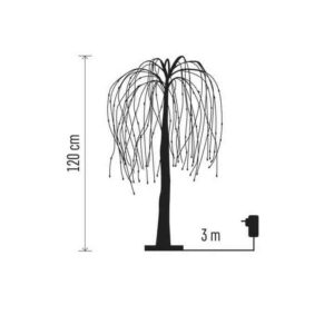 Edinstveno drevo v obliki žalujoče vrbeve, je primeren za zunanjo uporabo. Žareče božično drevo je opremljeno z 72 LED diodami. Božična dekoracija meri 120 cm v višino in ima 3 m napajalni kabel. Drevo je izdelano iz plastike in njegova stopnja odpornosti je IP44 , zato je kot nalašč za okrasitev vrta. Življenjska doba vgrajenih LED diod je približno 10.000 ur.